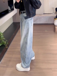 アメリカのハイストリート2025秋の新作、今年人気のハイウエストルーズストレートウォッシュスイーブナロージーンズ