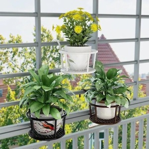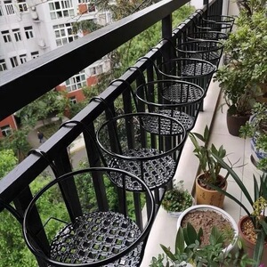 【高級】バルコニー用フラワースタンド、吊り下げ式鉄製フラワーバスケット、手すり、ガードレール、窓辺、グリーンロータス、オーキッドフラワーポットスタンド、吊り下げ式