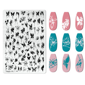 人気のネイルアートプリント鋼板レース蝶花ヘビチェック柄ネイル転写テンプレートネイルアートツール
