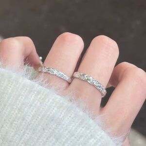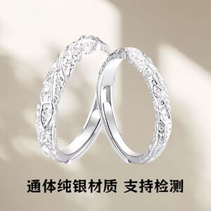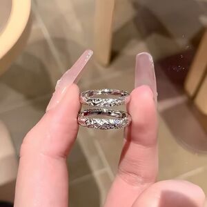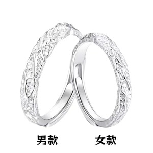 S999 ラバーズラブスターリングシルバーリングニッチ不規則な質感のカップルリング開口部調整 2025 新しいスタイル