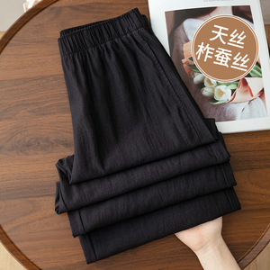 シルク絞りシルクナローワイドレッグパンツ女性用2025夏新作薄手ハイウエストストレートレディース高級カジュアルパンツ