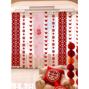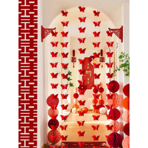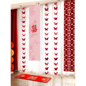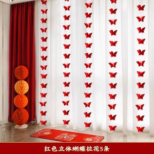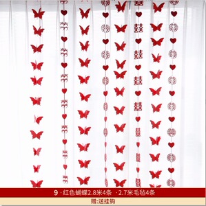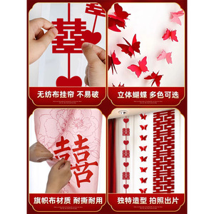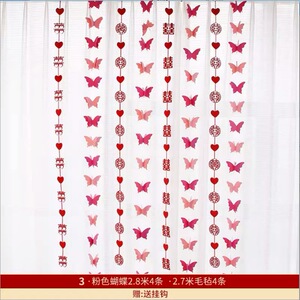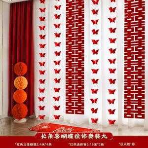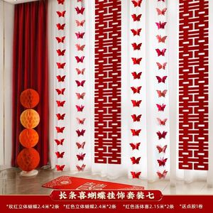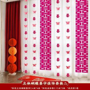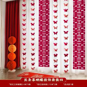 ウェディングストリップ、ハッピーワードステッカー、カーテンペンダント、ウェディングルームレイアウトセット、新居寝室装飾、ルームバタフライラテアート