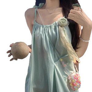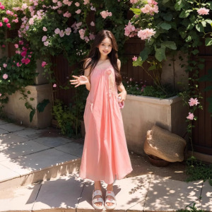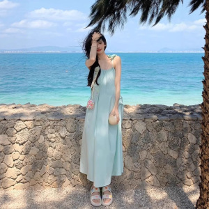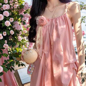 グアバカラードフレンチピンクサスペンダードレスレディースサマードーパミン三亜海辺休暇ビーチロングスカート