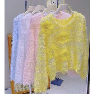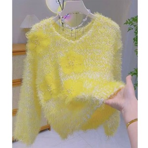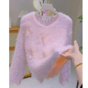 法式高级感立体花朵软糯针织衫温柔风秋冬新款甜美宽松毛衣女上衣