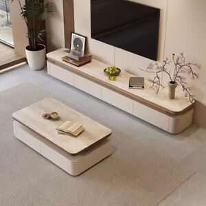 奶油实木茶几客厅家用新款现代极简组合简约小户型中古风电视柜