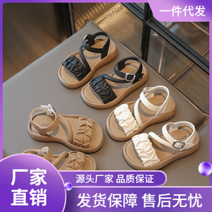 女の子の靴ローマンサンダル夏 2025 新しい子供靴小さな女の子プリンセスファッショナブルな中型および大型子供靴