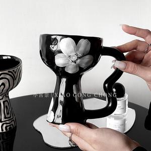 ニッチなデザインの背の高いコーヒーカップ、レトロなスタイルのセラミックマグ、女性のクリエイティブなハイエンドカップ誕生日