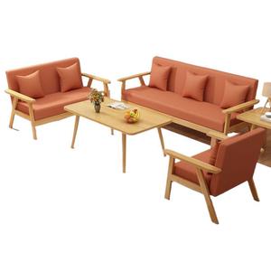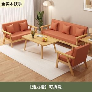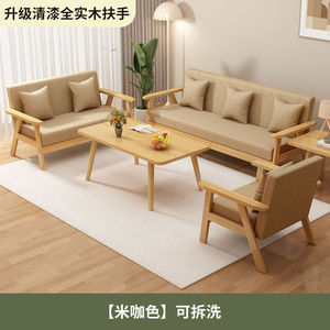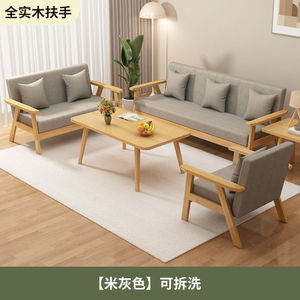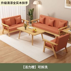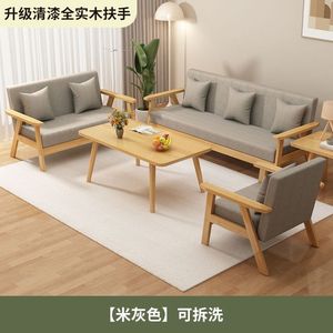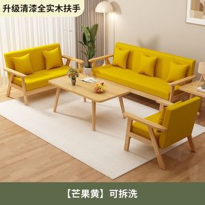 ファブリックソファコーヒーテーブル組み合わせ寝室レンタルルーム新しいワニス無垢材ソファオフィスシンプルな二人掛けソファ