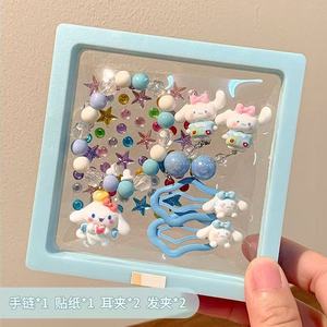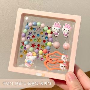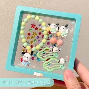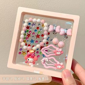 儿童手链女童卡通库洛米可爱饰品套装发夹手绳耳环脸贴头饰发饰