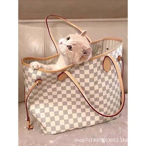 外国貿易オリジナルオーダー老眼ショッピングバッグネバーフルホワイトチェック柄マザーバッグショルダートートバッグ大容量ママバッグ