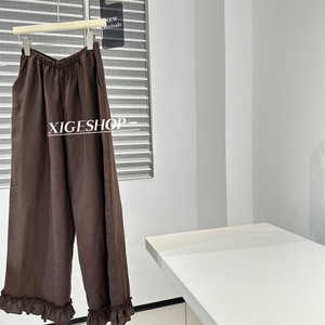 女性用リラックスリネンテンセルレースパンツ春夏薄手通気性ルーズストレート耳付き9点ワイドレッグパンツ