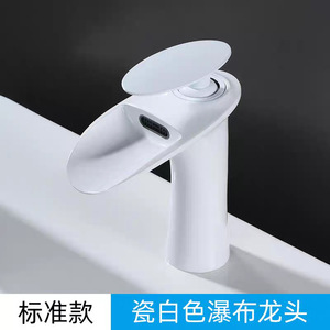 ヨーロッパのライト高級滝蛇口ホットとコールドバスルームホテル洗面台モダンな洗面台全銅白レトロ