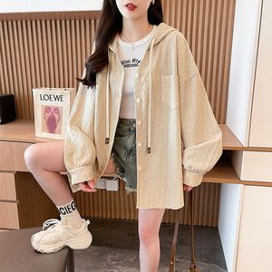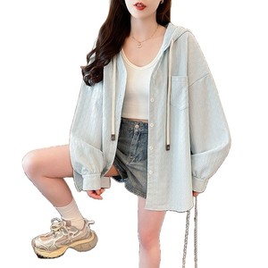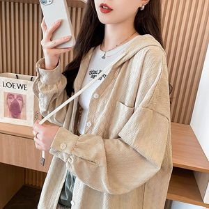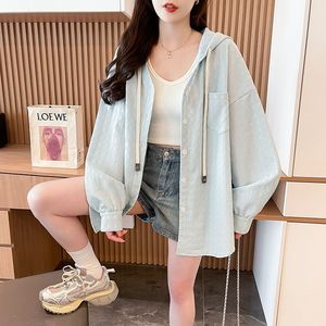 春夏季衬衫女2025新款韩版小众设计感宽松休闲慵懒风连帽薄款外套