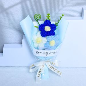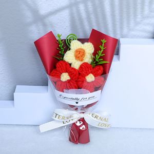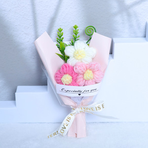 ニット糸のパフブーケ、造花、シミュレーションフラワー、ひまわり、多用途ギフト、ミニブーケ