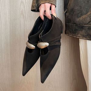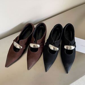 2025 春の新スタイル超絶金属バックルストラップ V マウスローヒールポインテッドトゥニッチレトロシューズ女性用