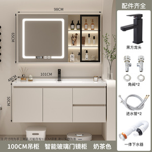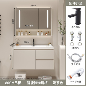クリームセラミック一体型洗面台バスルームキャビネット組み合わせ無垢材バスルーム洗面台洗面台洗面台