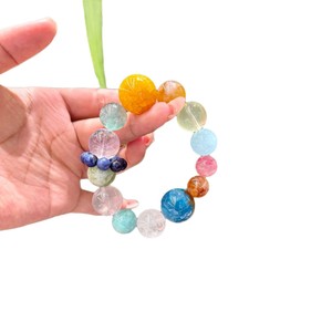 天然マルチクリスタルブレスレットアースアゲートイエローアゲートアメジストピンククリスタルアクアマリンシトリンブレスレット