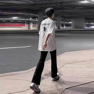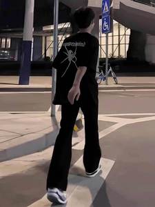 ピュアブラック柳葉スライドジーンズメンズ春夏マイクロバイブパンツアメリカンハイストリートナローバージョンスリムパンツ