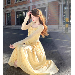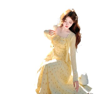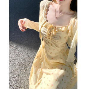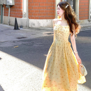 2025新款夏季法式黄色气质吊带连衣裙女夏日绝美小个子少女长裙潮