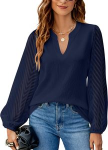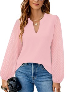 ヨーロッパとアメリカのクロスボーダー婦人服 2025 Amazon 独立したステーションの新しい無地 V ネックレーススプライシングシフォンシャツトップ