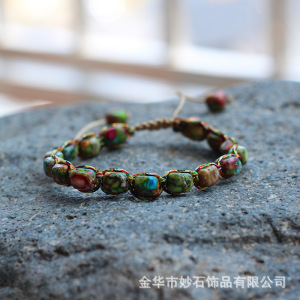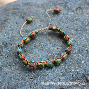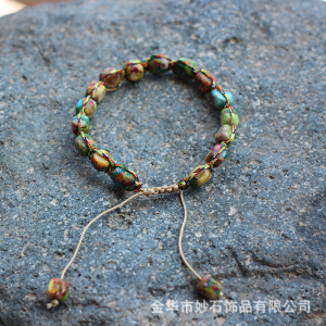 不規則なボヘミアンスタイルのナチュラルフラワーグリーンインペリアルストーンブレスレット織り調節可能なビーズブレスレット女性用