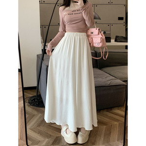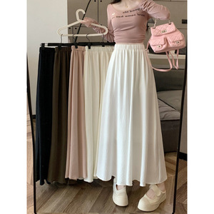 白いスカート 2025 新しい夏の学生韓国スタイルのルーズハイウエストスカートカジュアルドレープ A ラインスカート