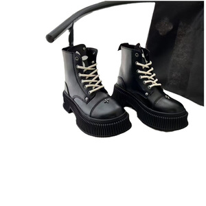 靴新款帆布英伦百搭风十字架机车女马丁短靴系带2024秋季厚底真皮