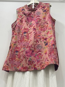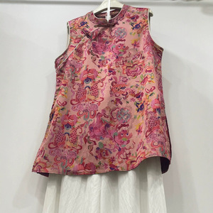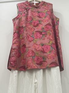 新しい中国風のローズレッドノースリーブベストシャツ女性の夏の新しい新しいルーズで多用途なスタイルのボタン付きトップ