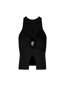 デザインツイスト中空ノースリーブニットキャミソール夏の新しいニッチスリムフィットアウタートップ女性用
