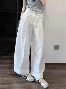 宽松时尚直筒裤子小个子韩系慵懒松弛感酷飒风白色工装阔腿裤女夏