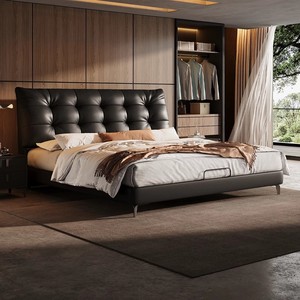 ビッグブラックベア レザーベッド マスターベッドルーム 2m x 2.2m ソフトパッケージ モダン シンプル 第一層牛革 ブラック 1.8m ダブルベッド