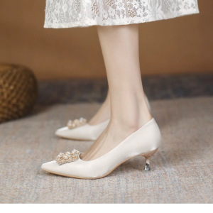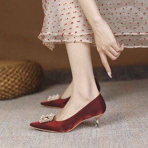 法式气质高跟鞋女细跟名媛高级小众耐磨设计感新娘中式秀禾专业鞋