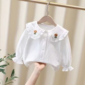 女童衬衫春秋2025新款小童春装长袖娃娃领白色洋气春季女宝宝衬衣