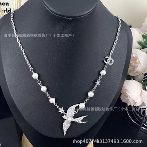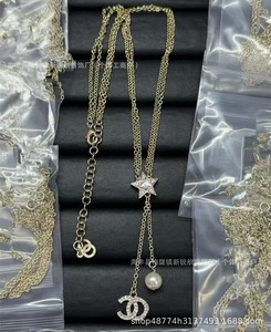 25P シャネル風ネックレス 新作 高級版 レインボー ダイヤモンド スター シャネル風パール ダブルCネックレス ハイエンドセーターチェーン
