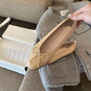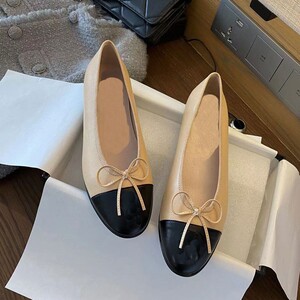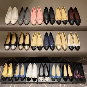 女蝴蝶结浅口小2025平底新款高品质单鞋圆头芭蕾舞鞋香风真皮拼色