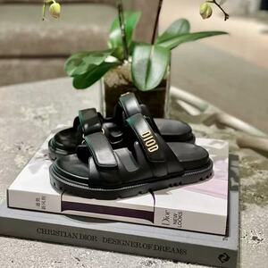2025年夏 欧米風 D文字 マジックテープ スリッパ 厚底 ビーチサンダル フラットサンダル レディース D文字デザイン