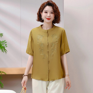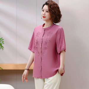 ファットママサマーシャツレディース半袖ゆったり中高年女性サマーシャツプラスファットプラスサイズレディースツーピーススーツ