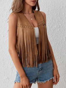 2025 ヨーロッパとアメリカの国境を越えた新しい女性のタッセルベストヒッピーベストカーディガンノースリーブ