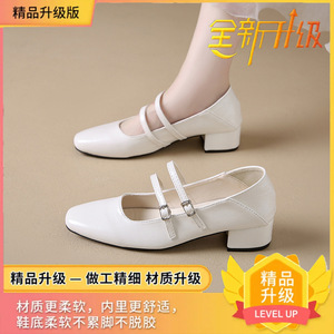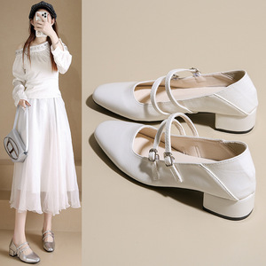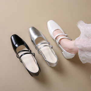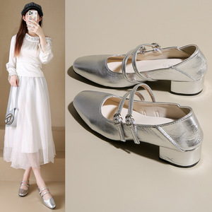 女性用シルバー浅口靴、春と秋の新しい韓国風フレンチスタイルフェアリースタイル優しい通勤太いヒールメリージェーンシューズ
