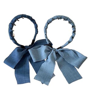 甜酷牛仔蓝色飘带齿梳发箍绑发一体2025新款头饰麻花编发头箍发饰