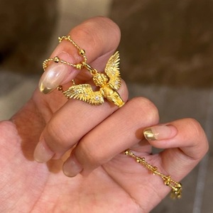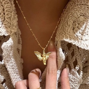 ヴィンテージ中古ブラッシュされた愛の神小天使ペンダントネックレス女性のライト高級ハイエンド鎖骨チェーン絶妙なセーターチェーン