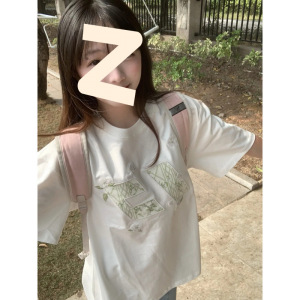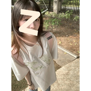 アメリカの超人気の文字刺繍入り新しい夏の綿Tシャツ、ゆったりとした半袖ニッチTシャツ、トップス、送料無料