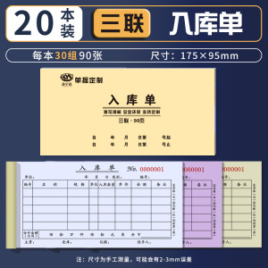 厚さ100ページの20冊、倉庫発送伝票、倉庫受入伝票、2連、3連、4連倉庫作業場受領伝票、新スタイル