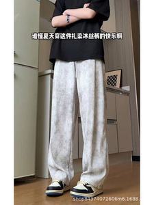 タイダイテクスチャーアイスシルクパンツメンズアメリカンドレープスポーツ速乾パンツストレートレッグルーズワイドレッグカジュアルパンツ