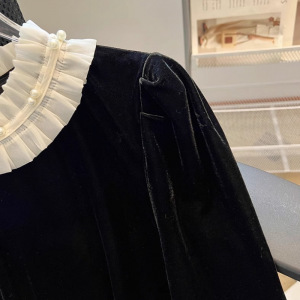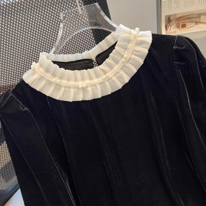 黑色金丝绒上衣女高级感秋冬装2025新款赫本风衬衫内搭长袖打底衫