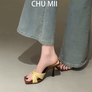 シープスキンバージョン~フレンチレトロスティレットハイヒールレディーススクエアトゥクロスストラップオープントゥサンダルニッチ気質サンダル