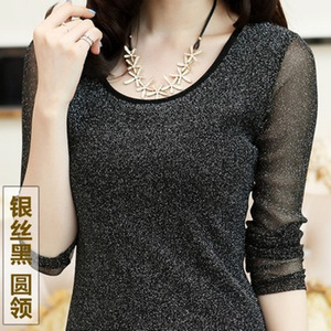 2025春秋装韩版圆领蕾丝打底衫女长袖加绒恤女百搭修身网纱上衣