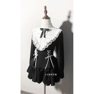 ニッチな地雷風ゴシックストラップウエスト昔ながらのロリータレーススプライシングドレス+ショーツ2点セット女性用