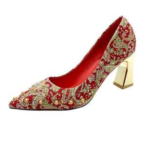Xiuhe 靴、ウェディングシューズ、レディースレッドチャイニーズブライダルウェディングシューズ、リベットハイヒール、キャットヒール、トーストドレスシューズ、スティレットヒール