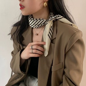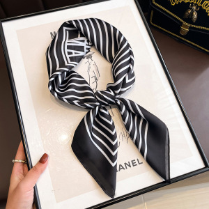 女性用シルクスカーフ、春と秋の万能ストライプ大判正方形スカーフ、夏用薄手の日焼け止めショール、小さな正方形スカーフ、トレンディなスカーフ